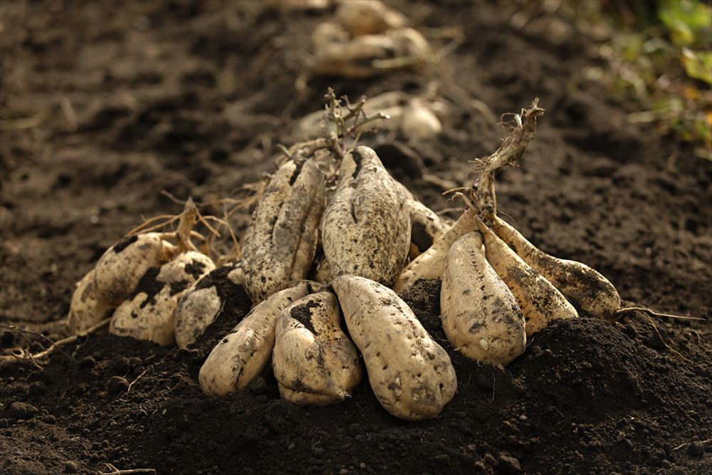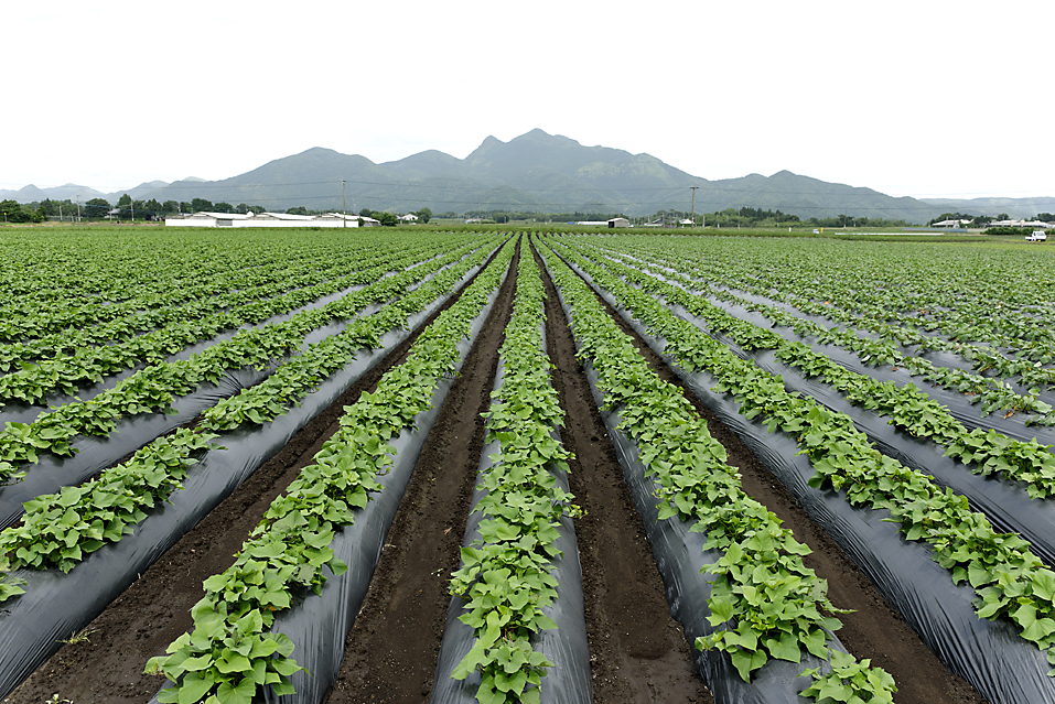 南さつま市は、冬でもあたたかな気候や、水はけの良い火山灰土壌など、この土地ならではの恵みがあります。その利点を最大限に活かして、芋焼酎の原料となるさつまいもをはじめ、米、大豆、牧草を大切に育てています。